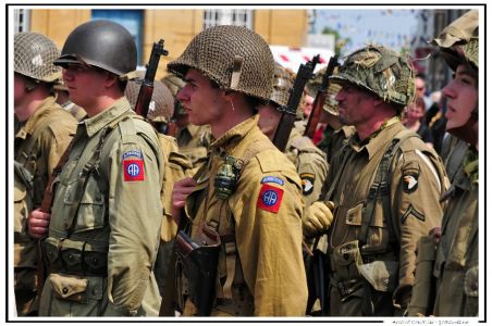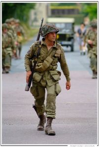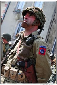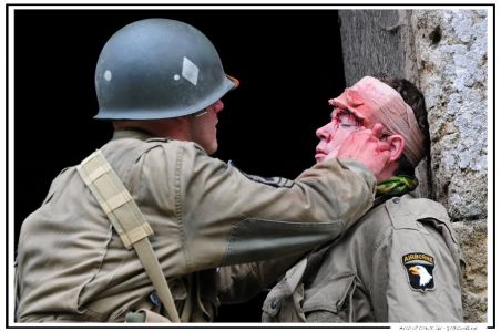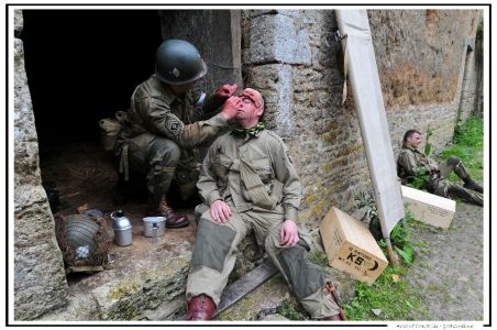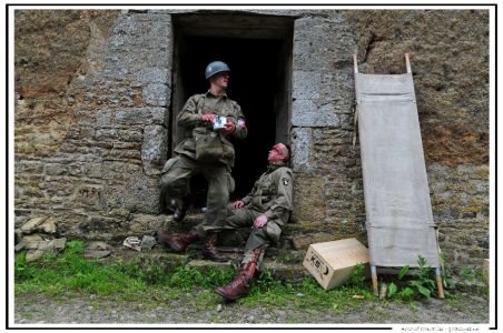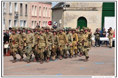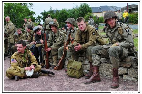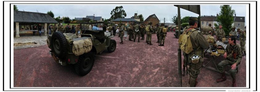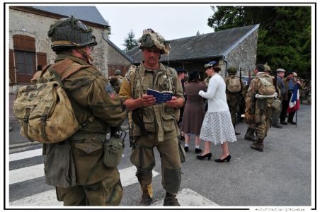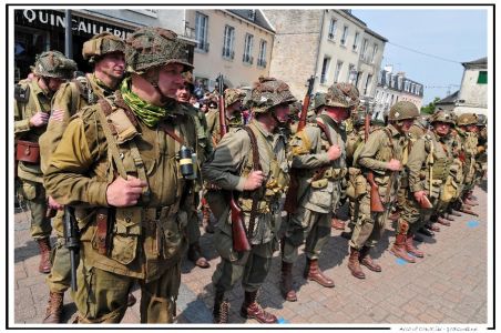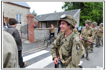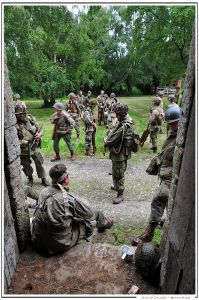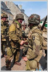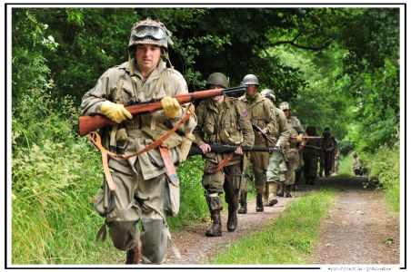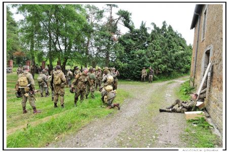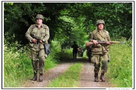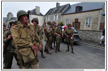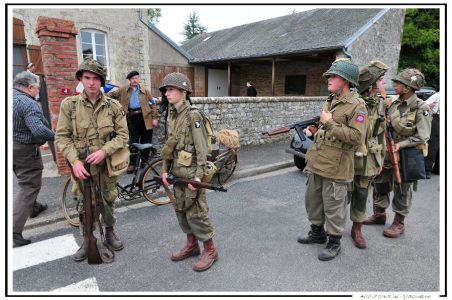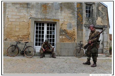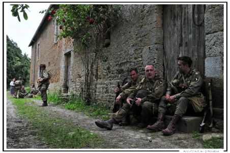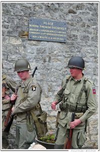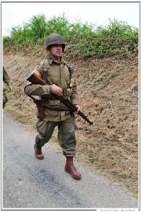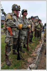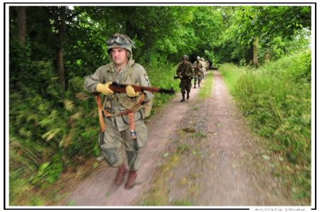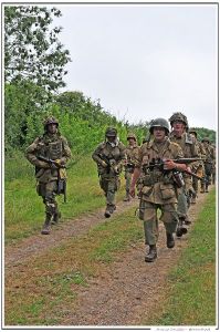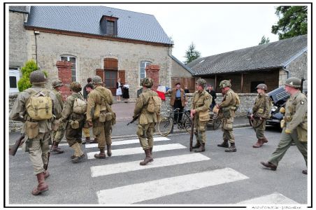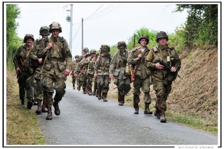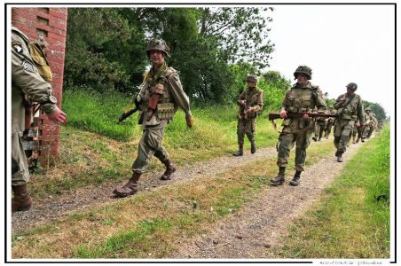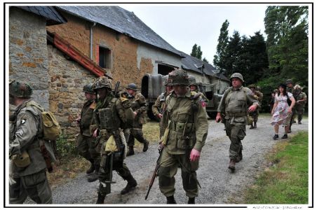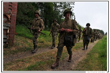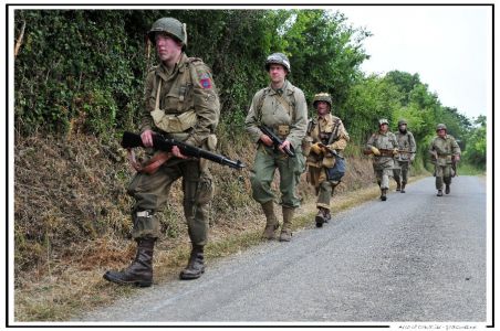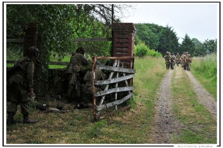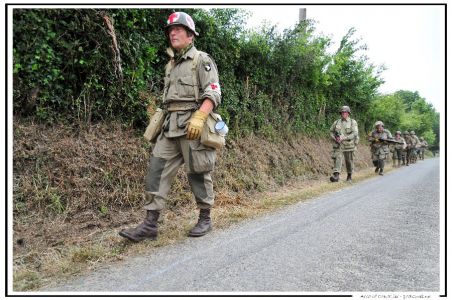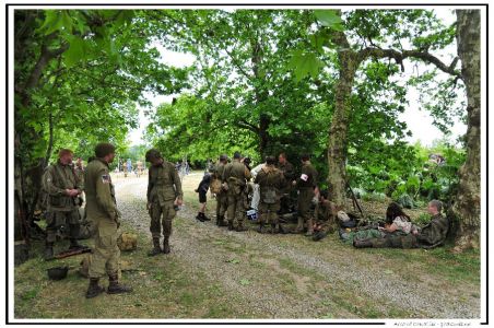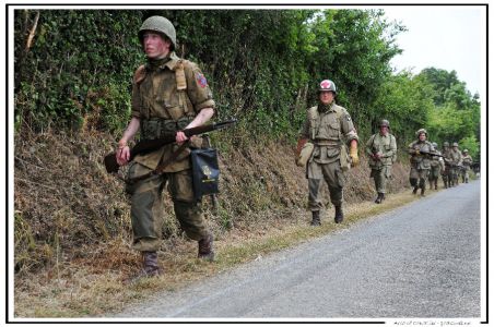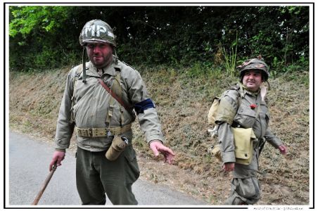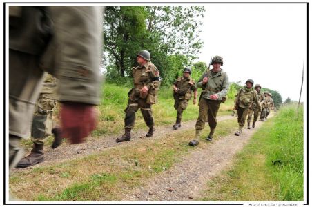 Un joli parcours d’environ 14 km avait ainsi été tracé sur les zones des combats des 12 et 13 juin 44, entre les Screaming Eagles des 327/401 GIR, 501st, 506 PIR et la 2nd US Armored face aux grenadiers de la 17th SS, accourus en renfort des Fallschirmjaeger de von der Heydte. La marche acceptait cette année là les représentants de toutes ces unités US, ainsi que les reconstitueurs de la 83rd ID qui avait relevé la 101st le 26 juin sur le secteur de Méautis concerné par la marche.