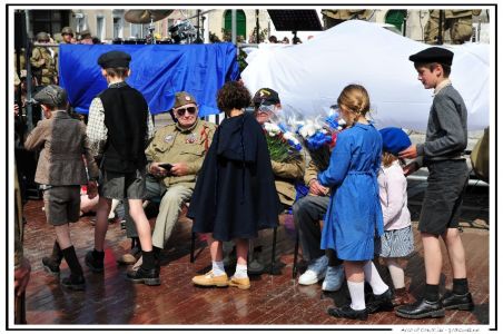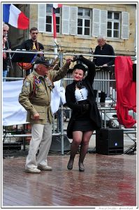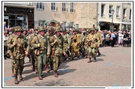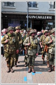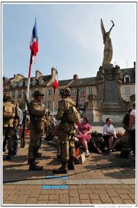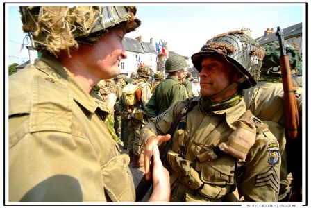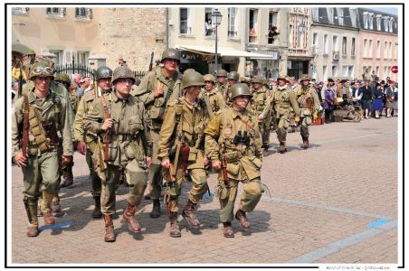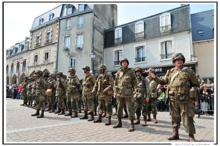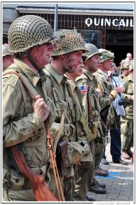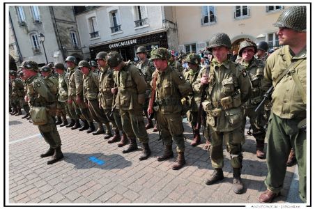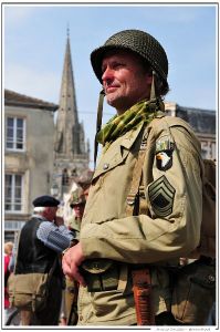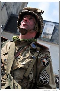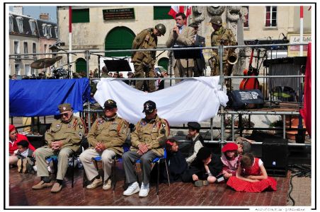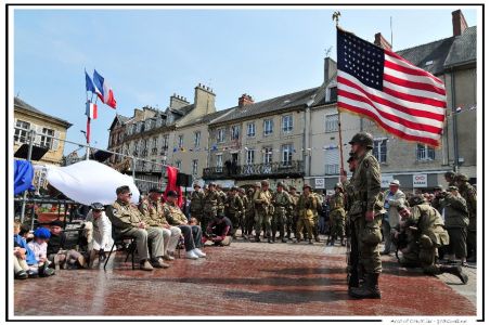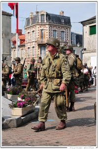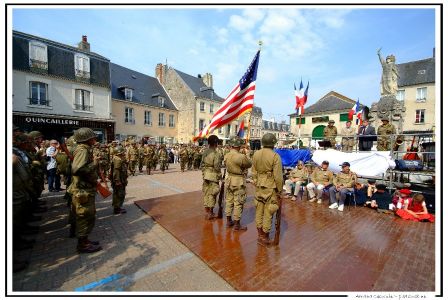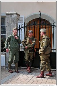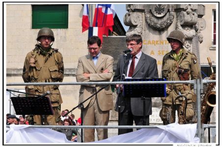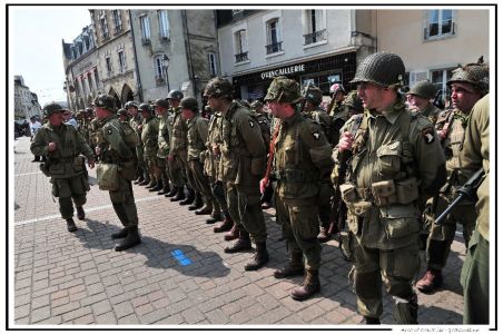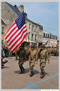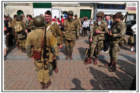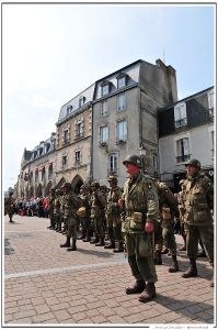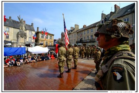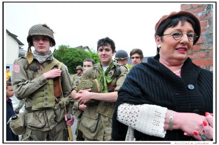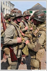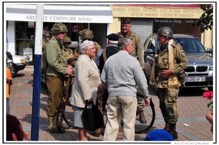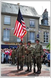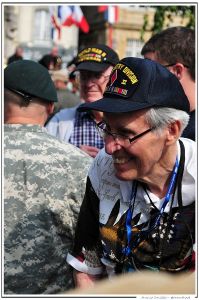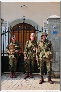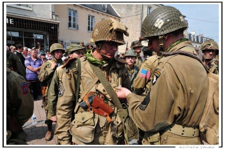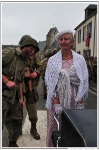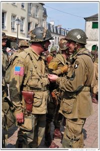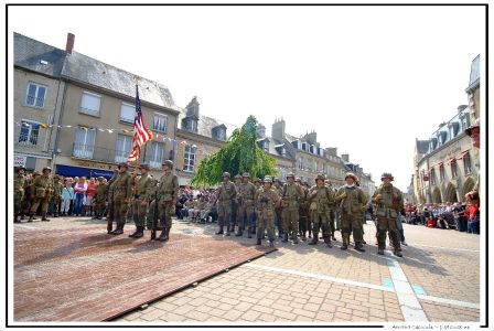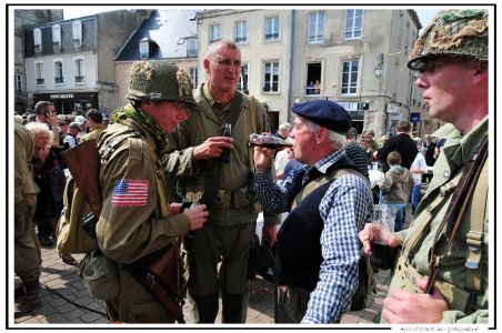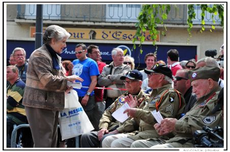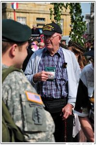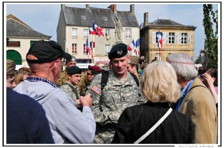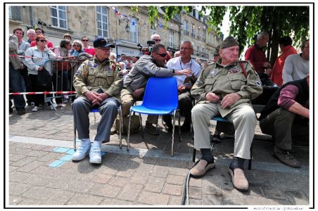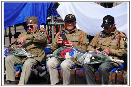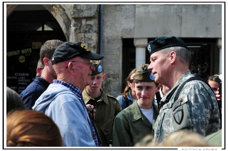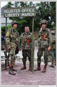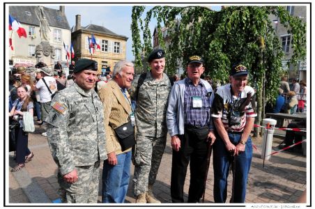 La rentrée dans Carentan fut magnifique, avec population en costume d’époque, musique d’époque et 3 vétérans pour accueillir les marcheur, Bob Noody F/506) et Lou Vecchi H 506) et Bob Gehrett (HQ 502).