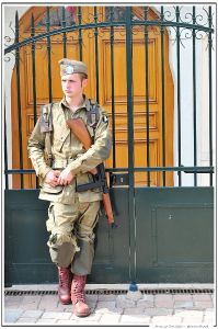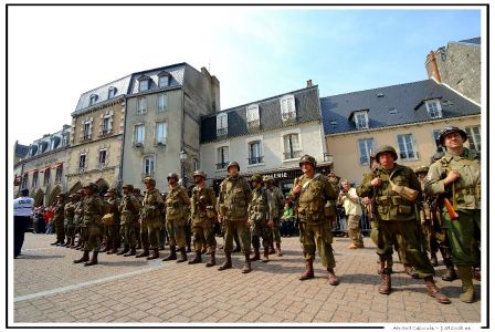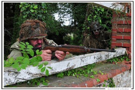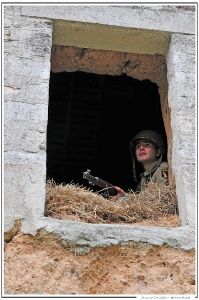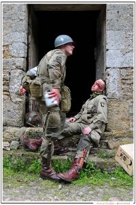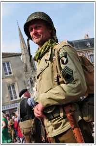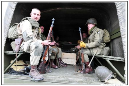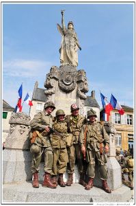 180 reconstitueurs venus des quatre coins de l’Europe se réunissaient au lavoir de Carentan pour sillonner durant toute la journée le territoire des affrontements.