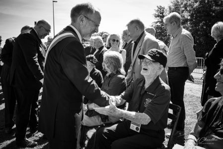 Le 01 juin 2019, j’ai retrouvé les vétérans et les amis de l’association Vétérans Back to Normandy lors de la cérémonie à Bricquebec Cette cérémonie commémorative au monument B17.Le 27 avril 1944, une forteresse volante, B17 a été abattue par la Flag allemande, au-dessus de Rocheville, à proximité du Foyer. 10 membres d’équipage sur les 11 sont morts. Le 8 mai, un autre B17 a été abattu au-dessus de Bricquebec, à proximité du Foyer, faisant 11 morts. Depuis de nombreuses années, les deux communes ont fait ériger une stèle à la mémoire des aviateurs américains tués en venant pilonner la base de V2 de Sottevast pour préparer le débarquement du 6 juin
